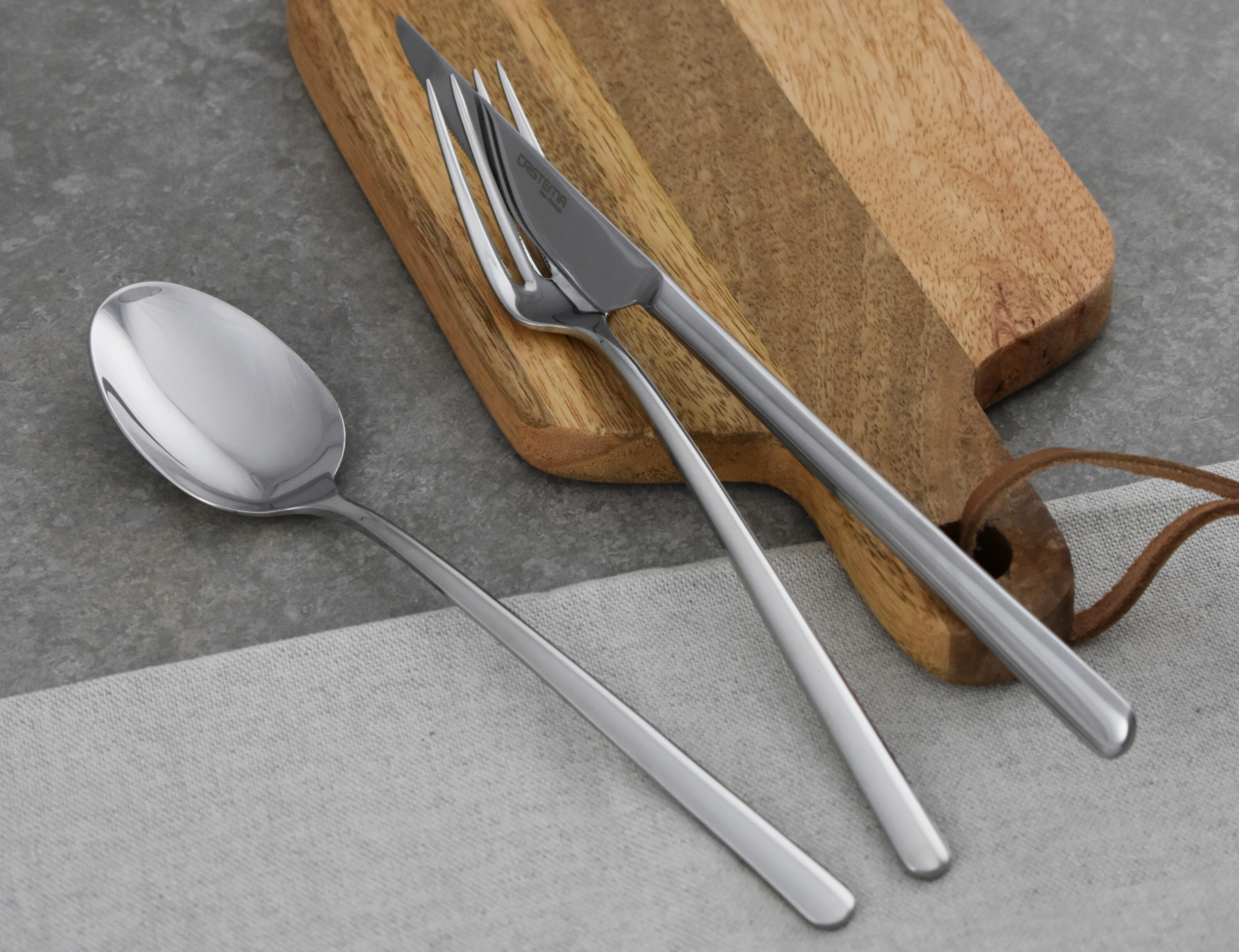 The Tokyo Cutlery Set by Cristema stands out for its modern and minimalist design, inspired by Japanese elegance. Made from high-quality stainless steel, it combines durability and sophistication, making it the perfect choice for any table.